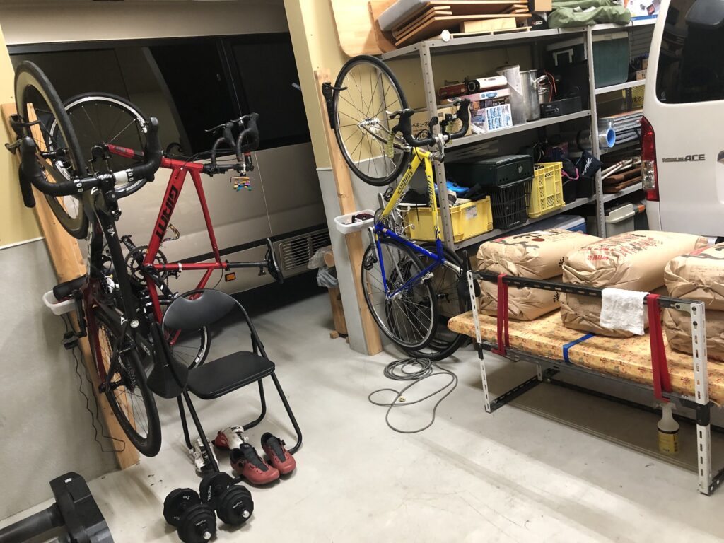 このスペースを、ロードバイクの保管、かつローラーでのトレーニング用として利用しています。