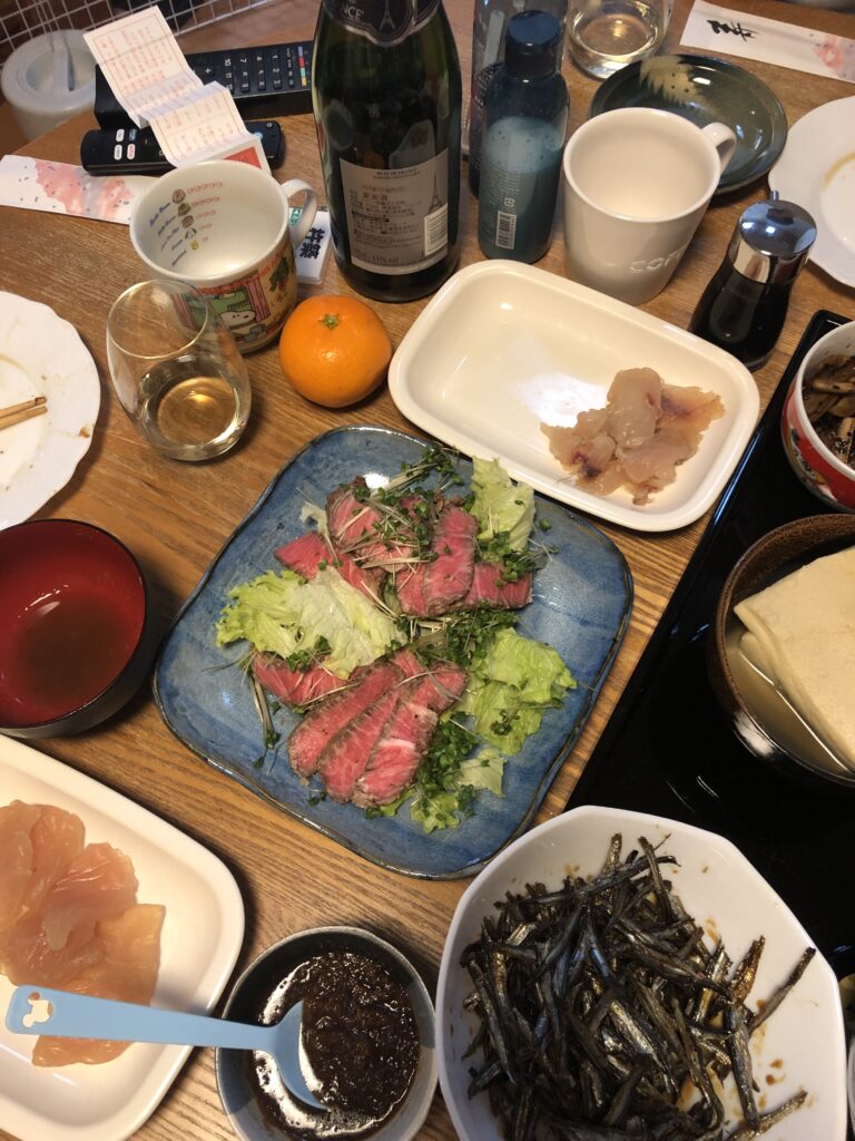 妻の手作りお節料理と共に、お酒(各種)も頂きながら新年のお祝いをしました。