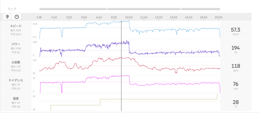 ・その代わり、中間のケイデンスを少しだけ上げてみる