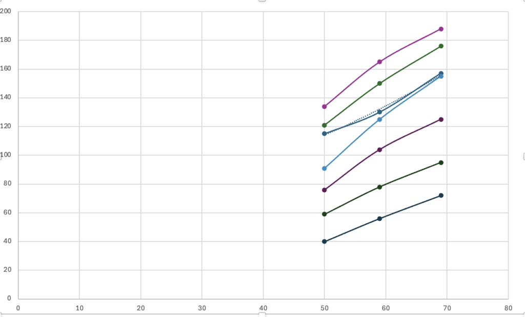 今日以降は、上記外周の設定に変更してエアロバイクでのトレーニングを行い、あらためてデータを確認してみたいと思います。