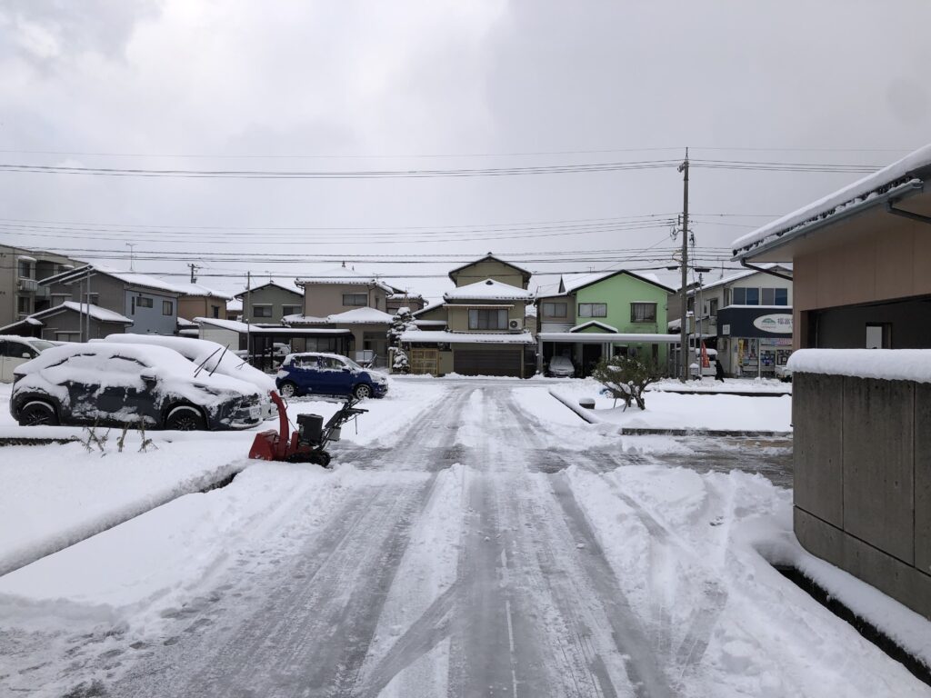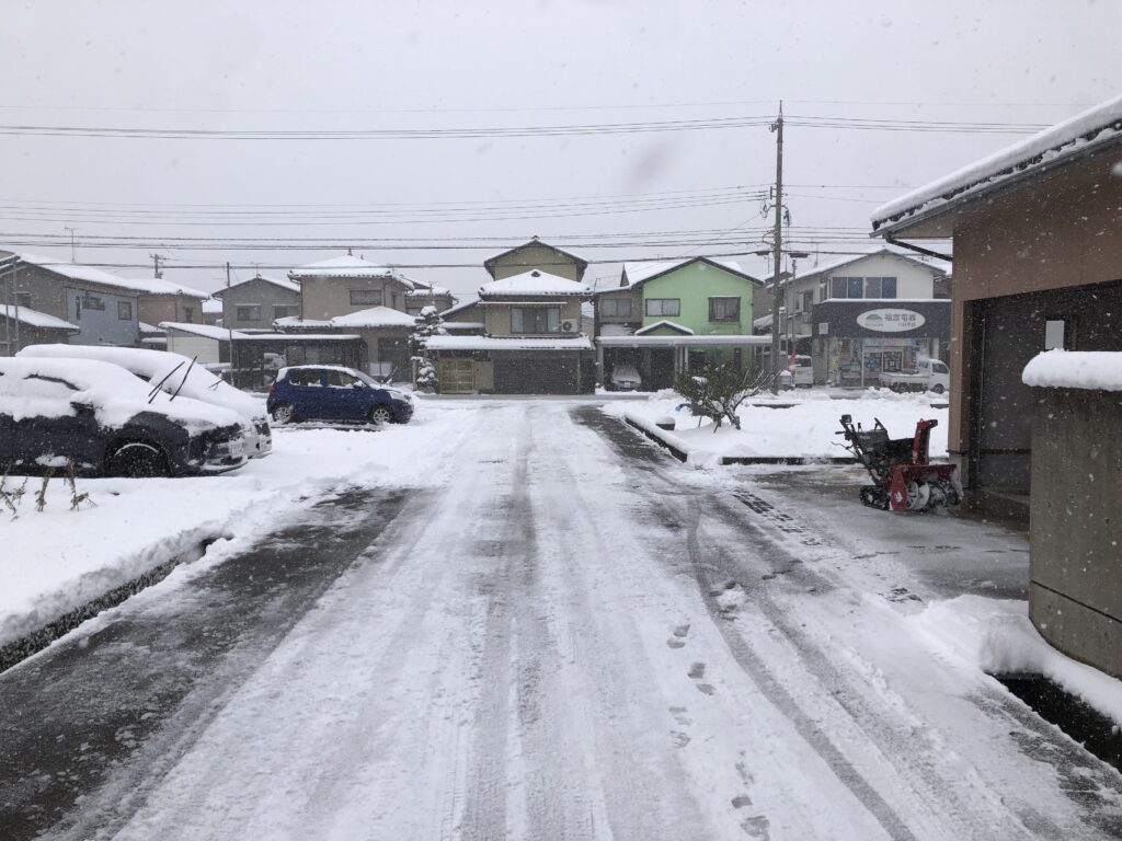 自宅前が終わったら、今度は自宅裏にある納屋前道路の除雪。
