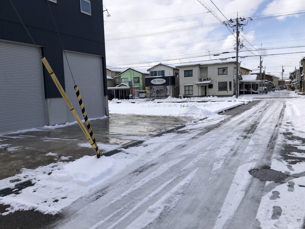 車のタイヤで踏み締められたところの雪は、すでに固く凍ってしまっていました。