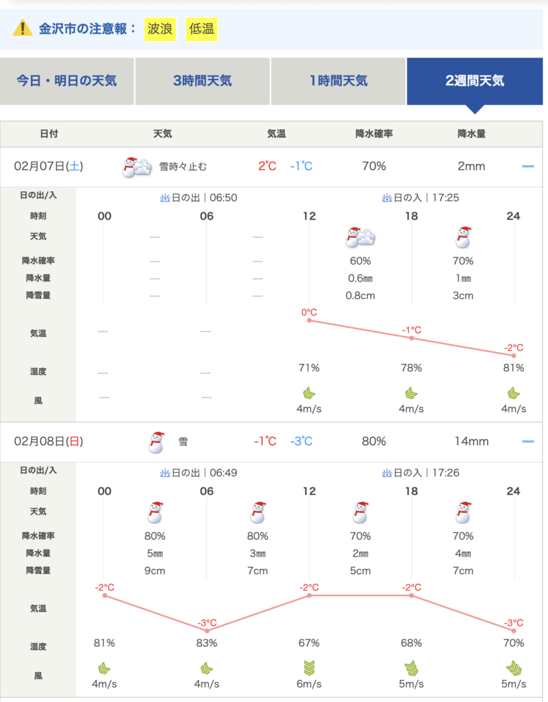 あわせて、金沢でどの程度の降雪量が見込まれているかも見てみると…