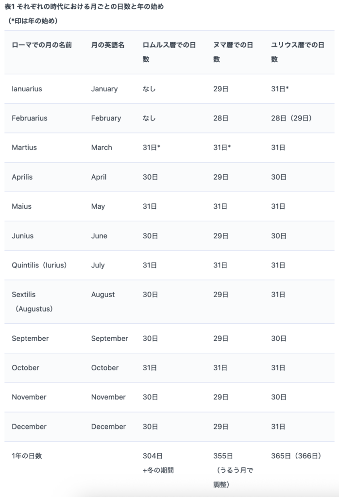 紀元前8世紀頃のローマで使われていたとされる「ロムルス暦 」では、月は10しかなく、農業をしない冬の期間には月日が割り振られていませんでした。